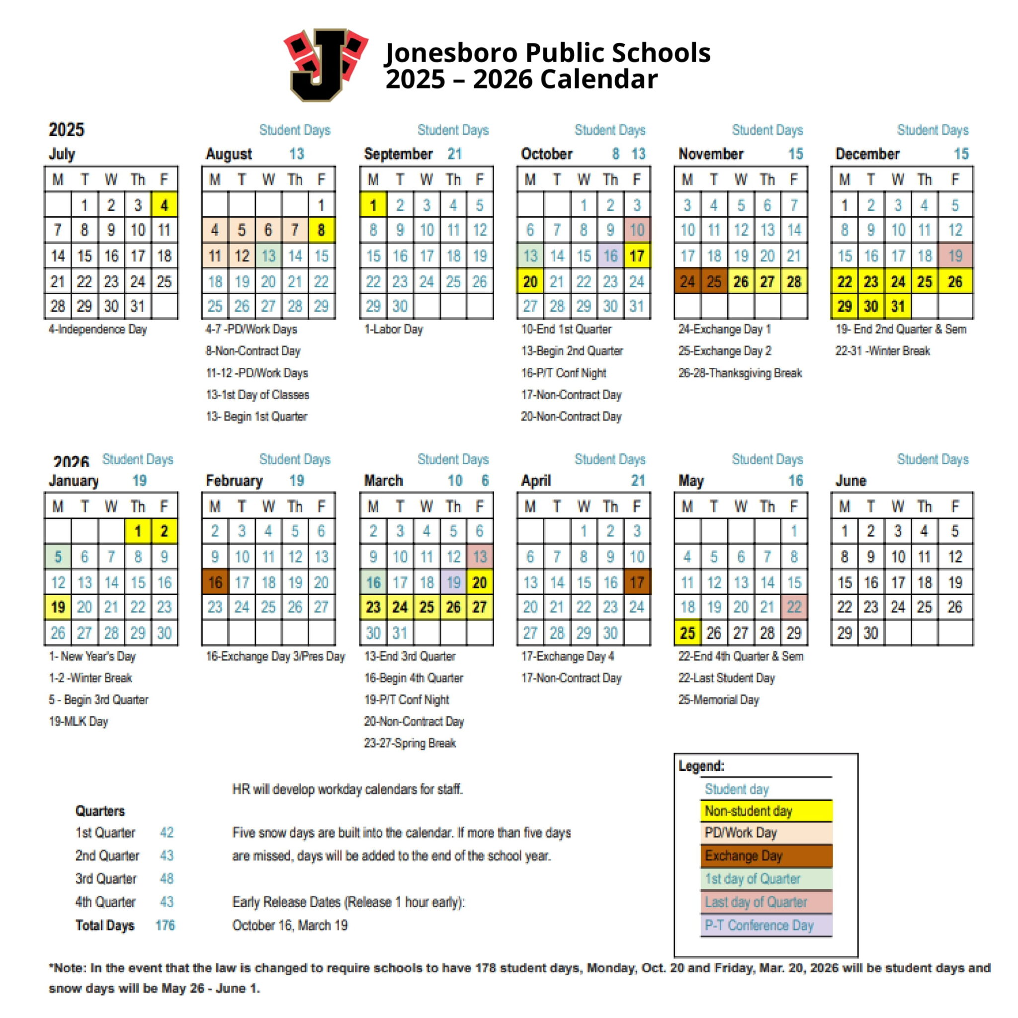 Jonesboro Public Schools Calendar 25 26 Dela Juliann
