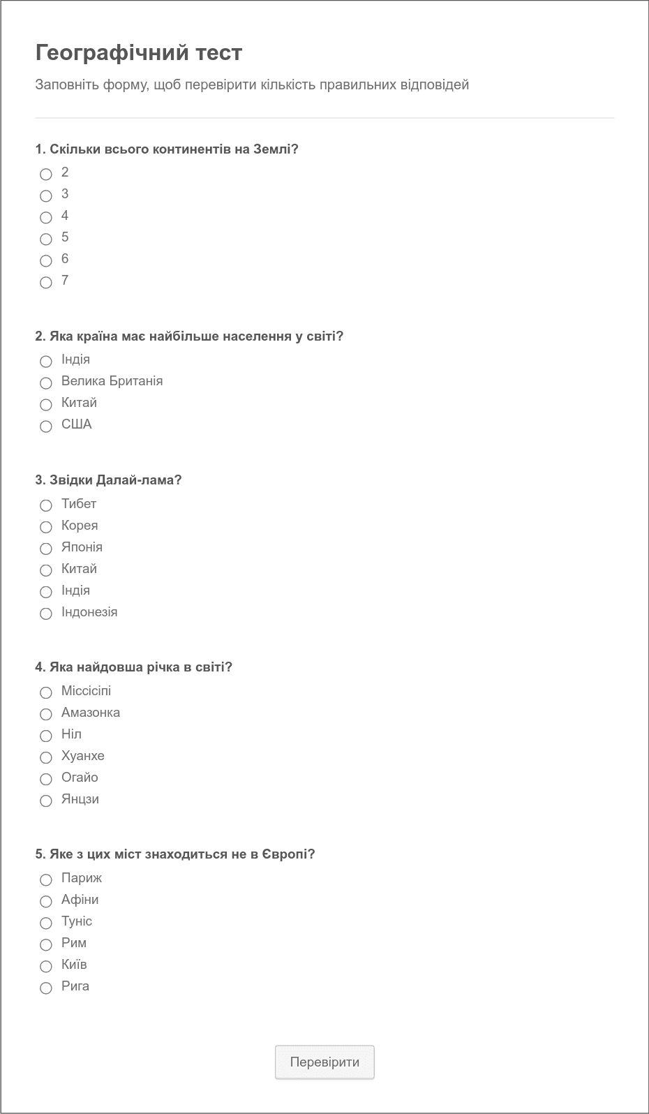 Тест з Підрахунком Правильних Відповідей Form Şablonu Jotform