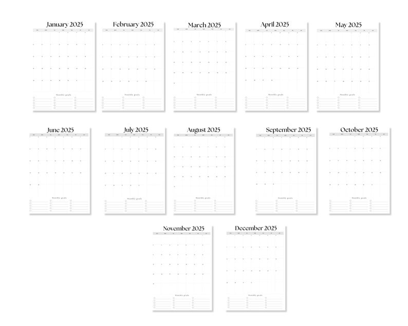 2025 Monthly Calendar Printable Calendar PDF Monthly Planner Journal