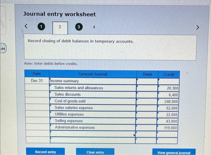 Solved Journal entry worksheet 4 Record the entry to close Chegg com