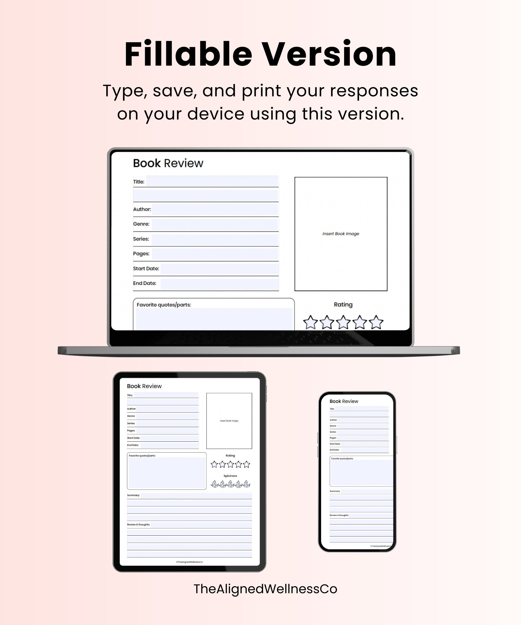 Book Review Printable Template Digital Reading Journal Pdf Book