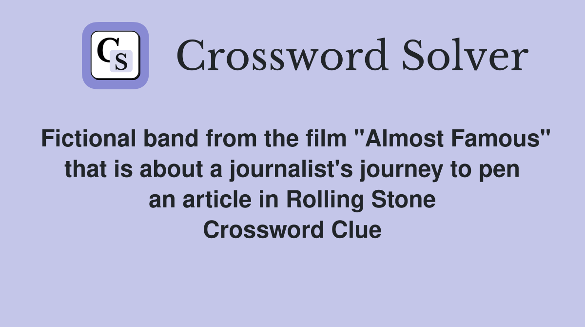 Fictional band from the film quot Almost Famous quot that is about a journalist