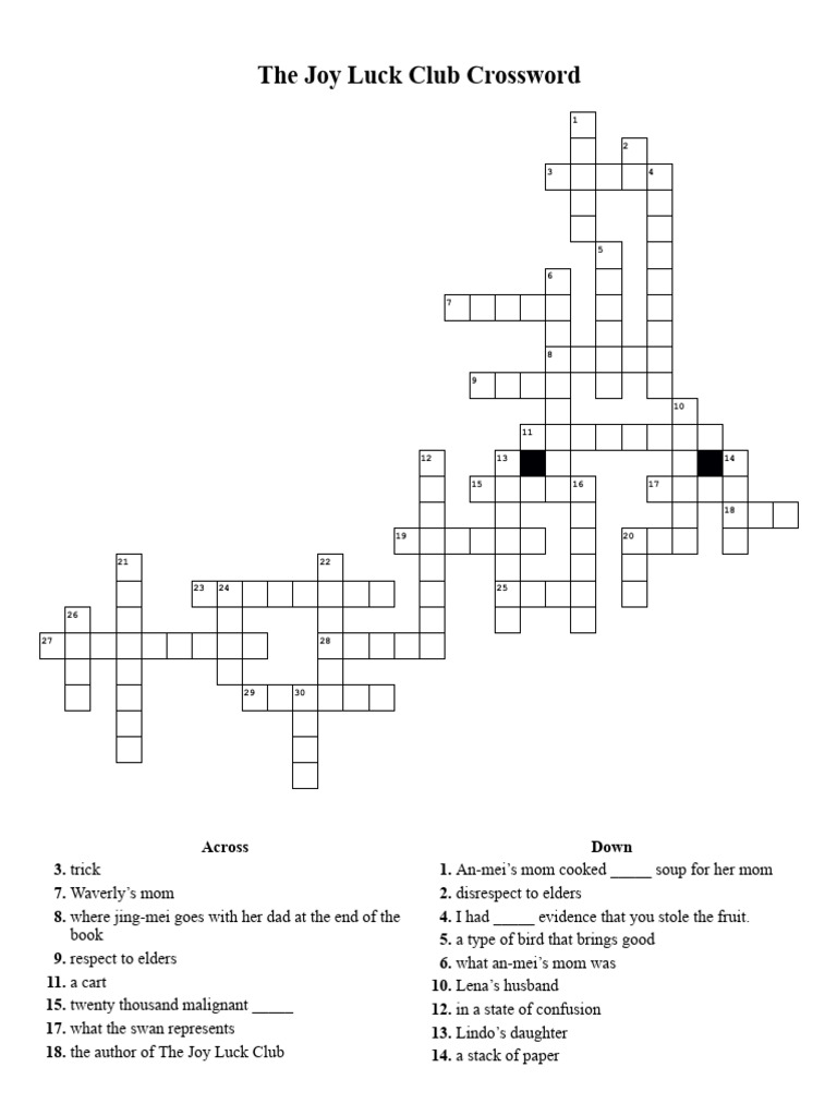 The Joy Luck Club Crossword PDF