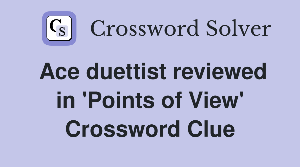Ace duettist reviewed in Points of View Crossword Clue Answers