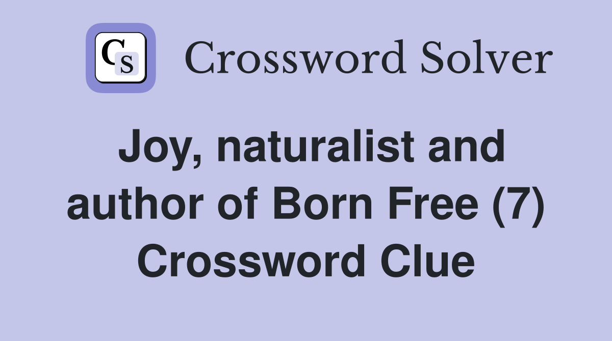Joy naturalist and author of Born Free (7) Crossword Clue Answers