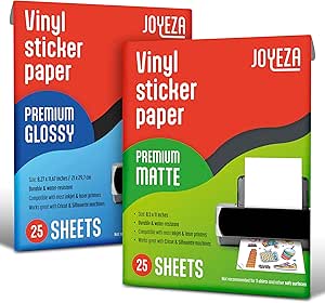 JOYEZA Premium Printable Vinyl Sticker Paper for Inkjet Printer 25