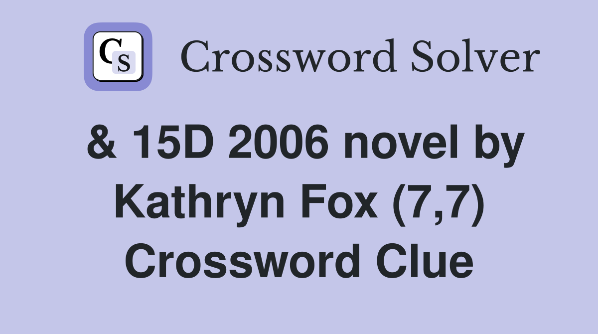 15D 2006 novel by Kathryn Fox (7 7) Crossword Clue Answers