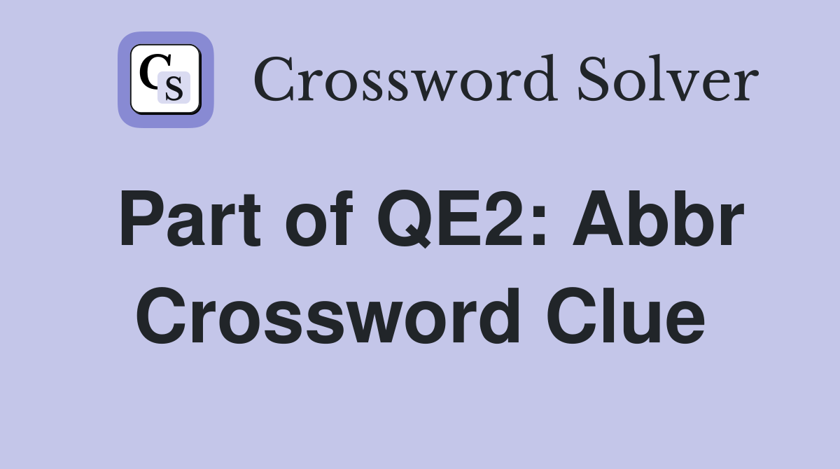 Part of QE2: Abbr Crossword Clue Answers Crossword Solver