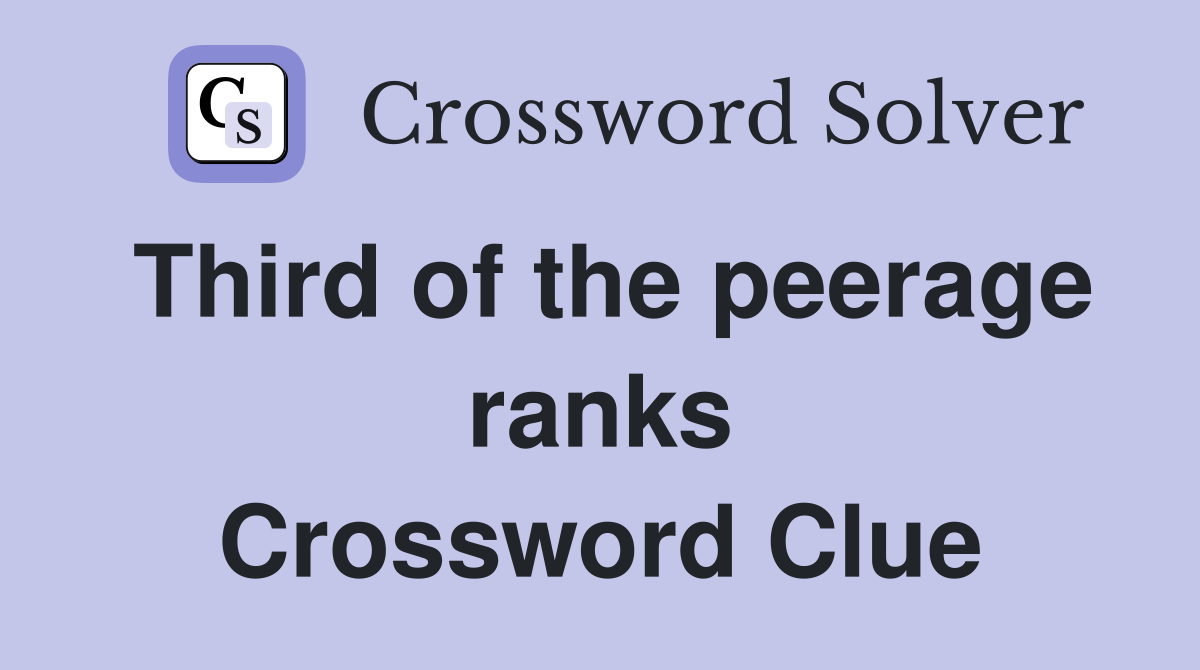 Third of the peerage ranks Crossword Clue Answers Crossword Solver