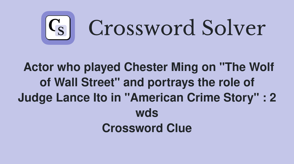Actor who played Chester Ming on quot The Wolf of Wall Street quot and portrays
