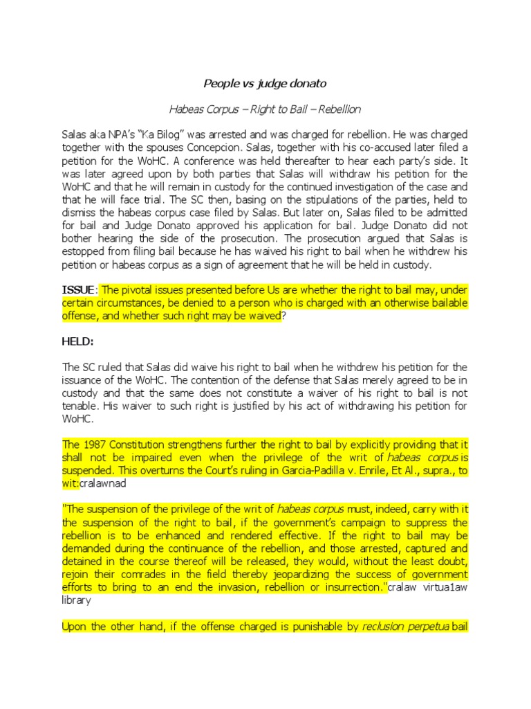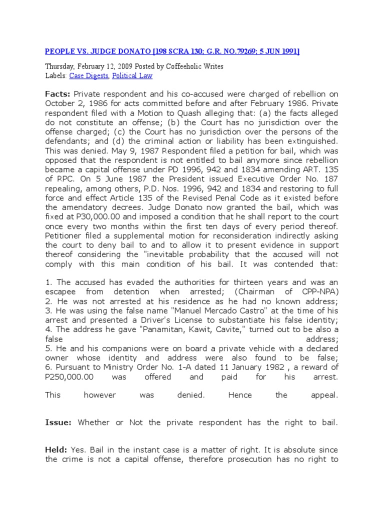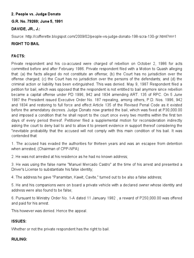 People Vs Judge Donato CD PDF Bail Habeas Corpus