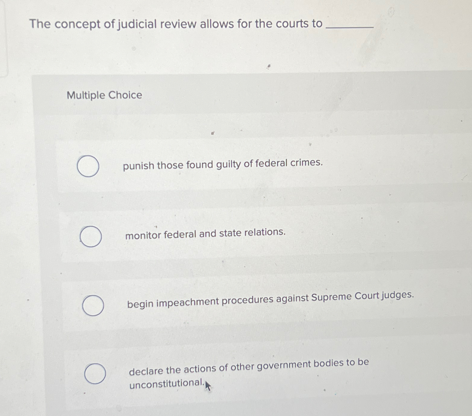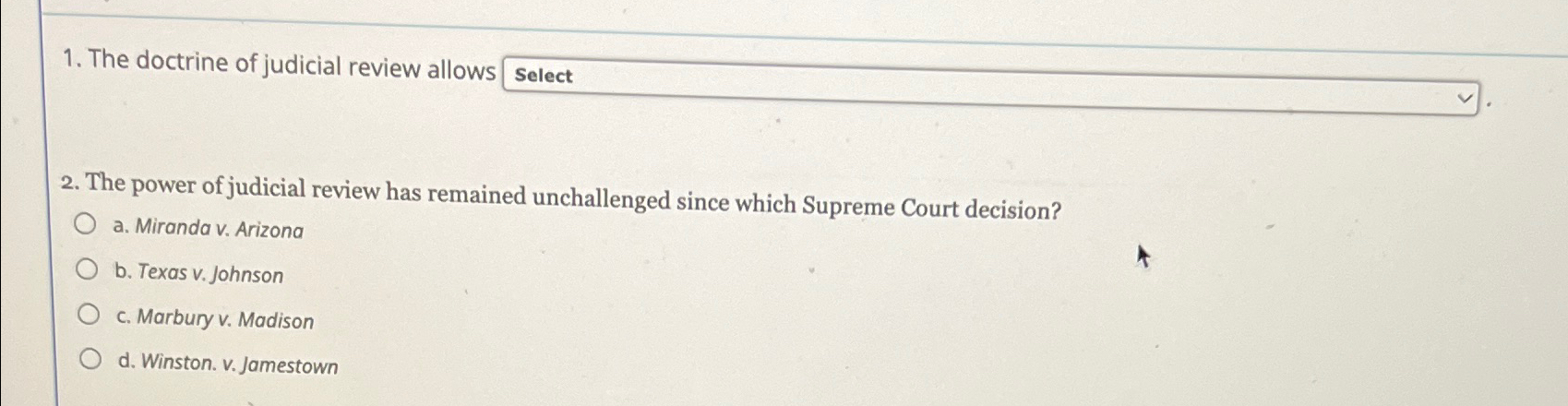 Solved The doctrine of judicial review allows SelectThe Chegg com