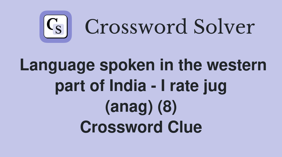 Language spoken in the western part of India I rate jug (anag) (8