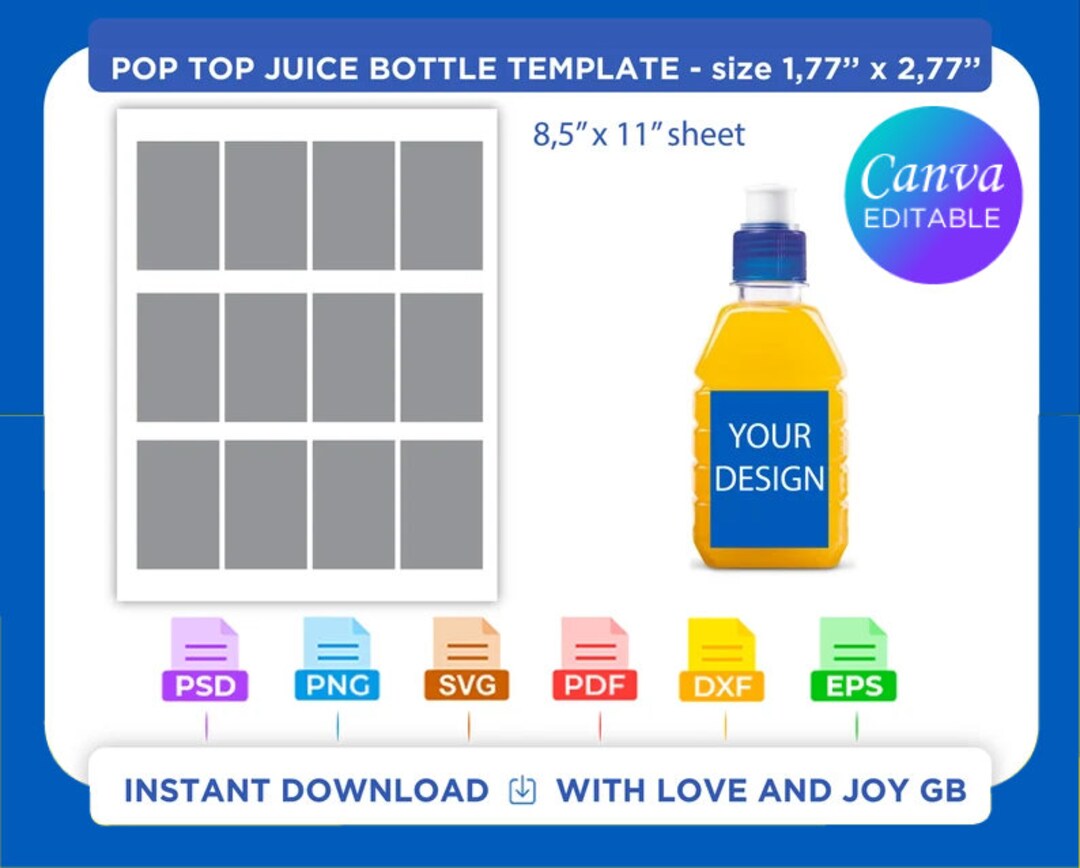 Pop Top Juice Bottle Template Svg Png Dxf Eps Label Wrapper