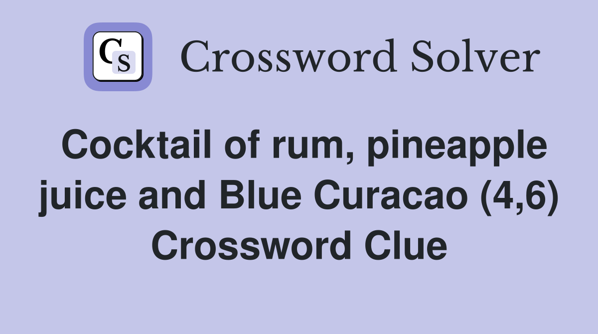 Cocktail of rum pineapple juice and Blue Curacao (4 6) Crossword