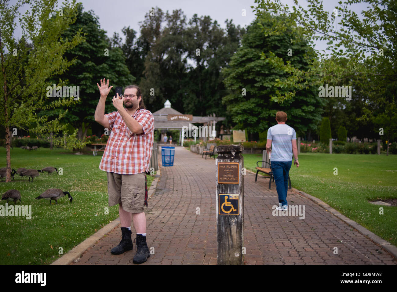 Two men move through Julia Davis Park playing Pokemon Go Stock Photo