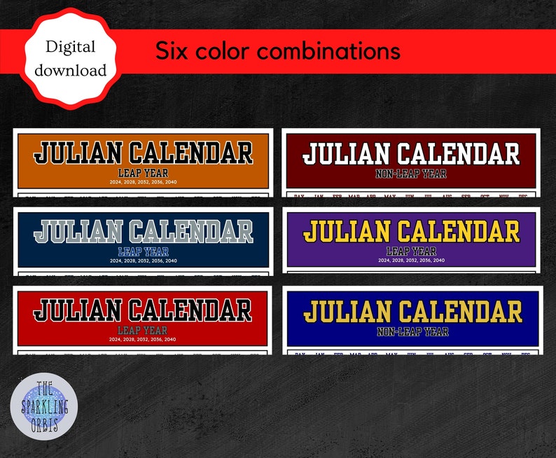 Julian Calendar Military Digital Download Printable PDF Leap Year and