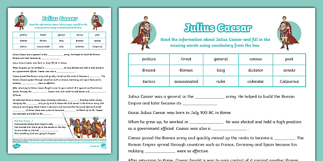 Julius Caesar Cloze Worksheet (teacher made) Twinkl
