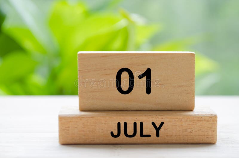 July 1st Calendar Text on Wooden Blocks with Customizable Space for