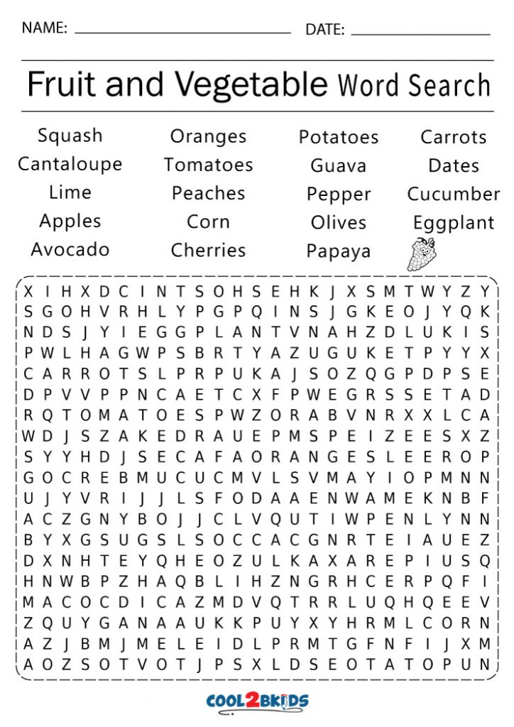 Fruit And Vegetable Word Search Printable Word Search Maker