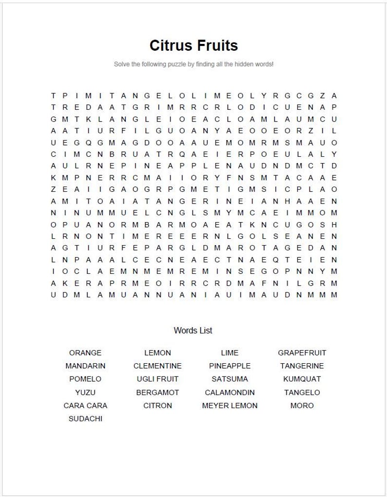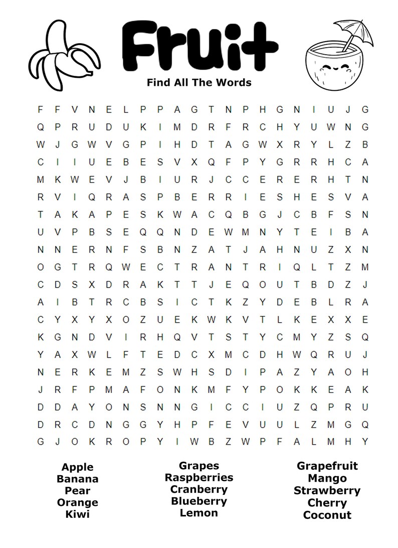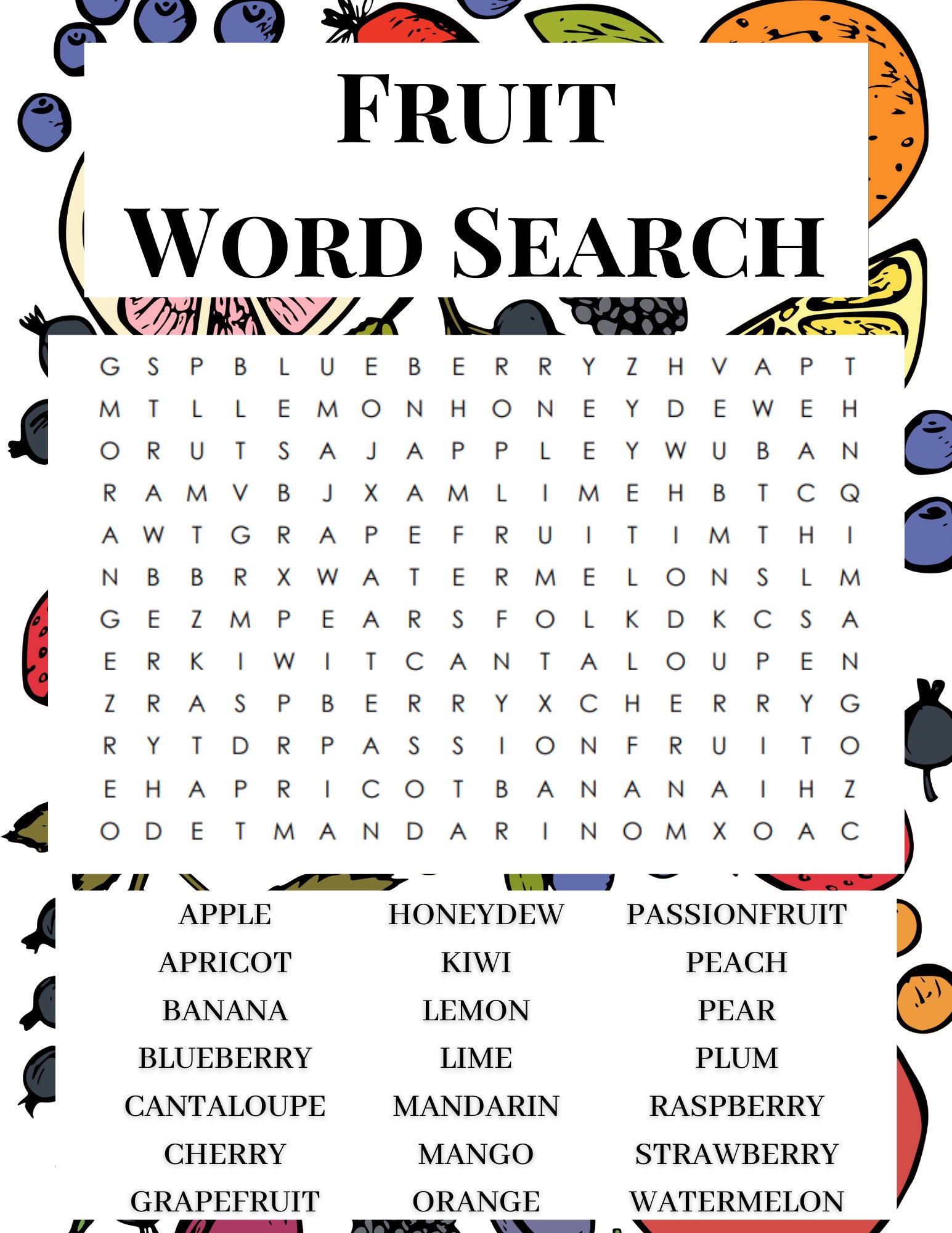 Printable Fruit Word Search Puzzles (PDF PNG) Word Search Land