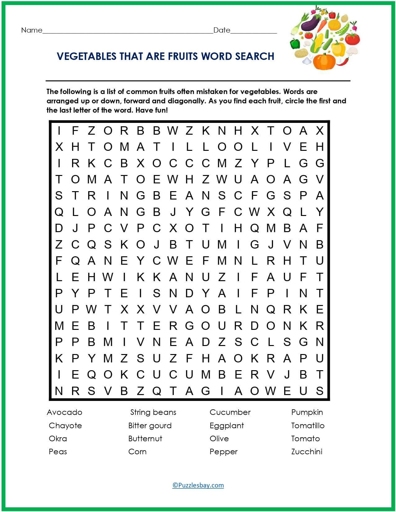 Vegetables That Are Fruits Word Search Puzzlesbay