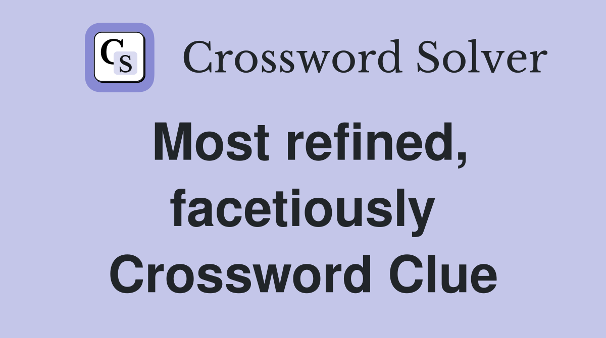 Most refined facetiously Crossword Clue Answers Crossword Solver