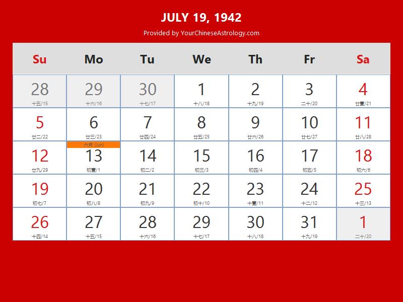 Chinese Calendar Jul 19 1942: Auspicious Things to Do and Hours Bazi