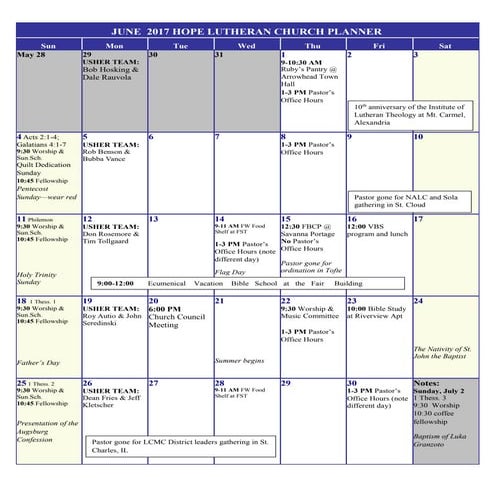 June 2017 Calendar of Events PDF