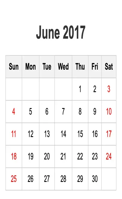 June 2017 Calendar