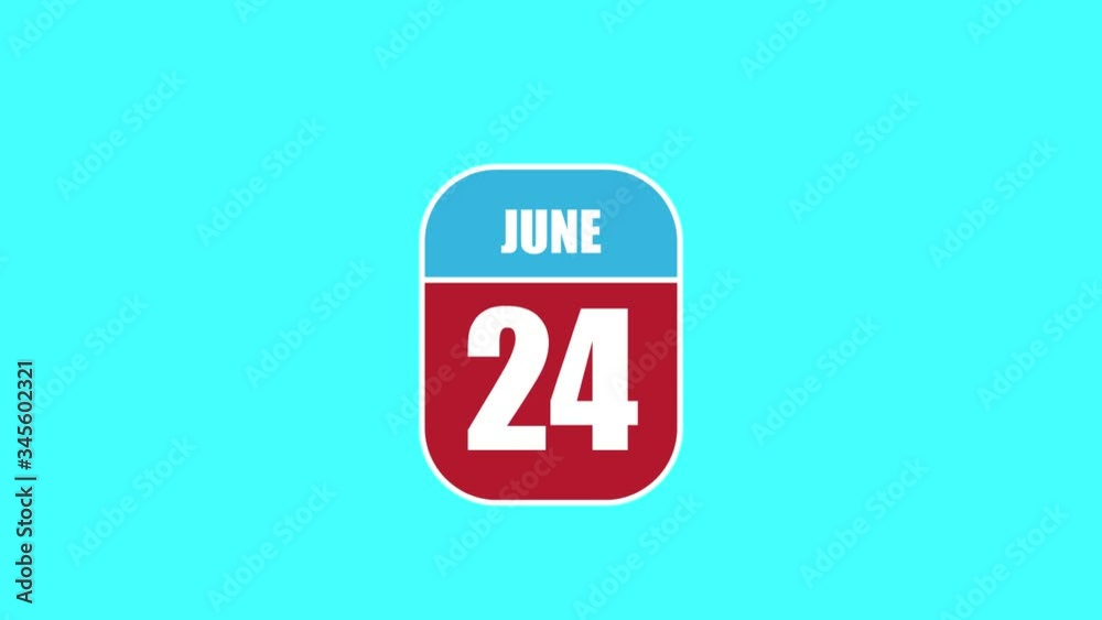 june 24th Day 24 of month 2D calendar animation A calendar sheet is