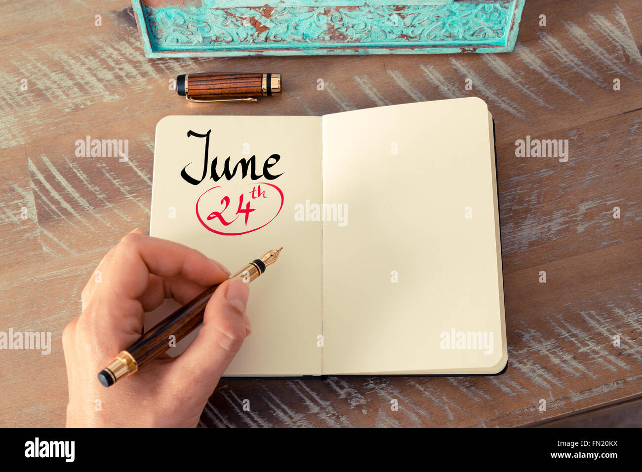 June 24th Day 24 of Month Calendar Date the Hand Holds a Black Pen