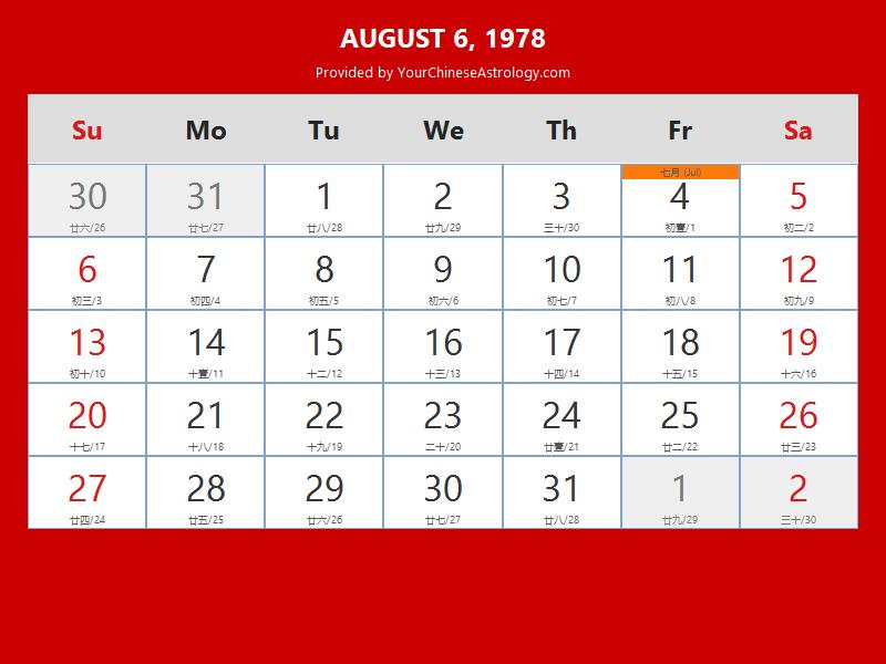 Chinese Calendar Aug 06 1978: Auspicious Things to Do and Hours Bazi
