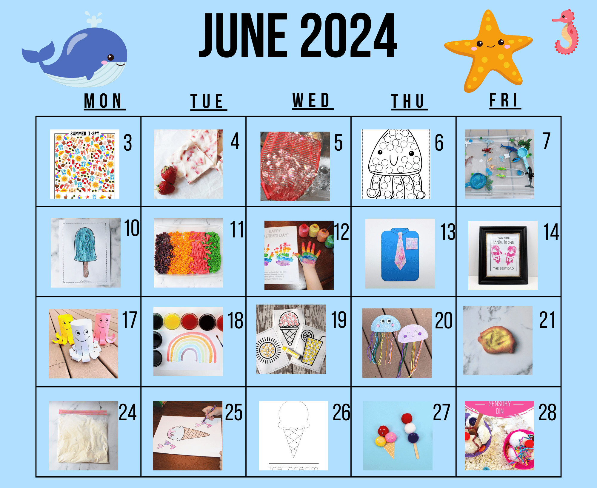 June Activity Calendar for Fun Summer Preschool Activities