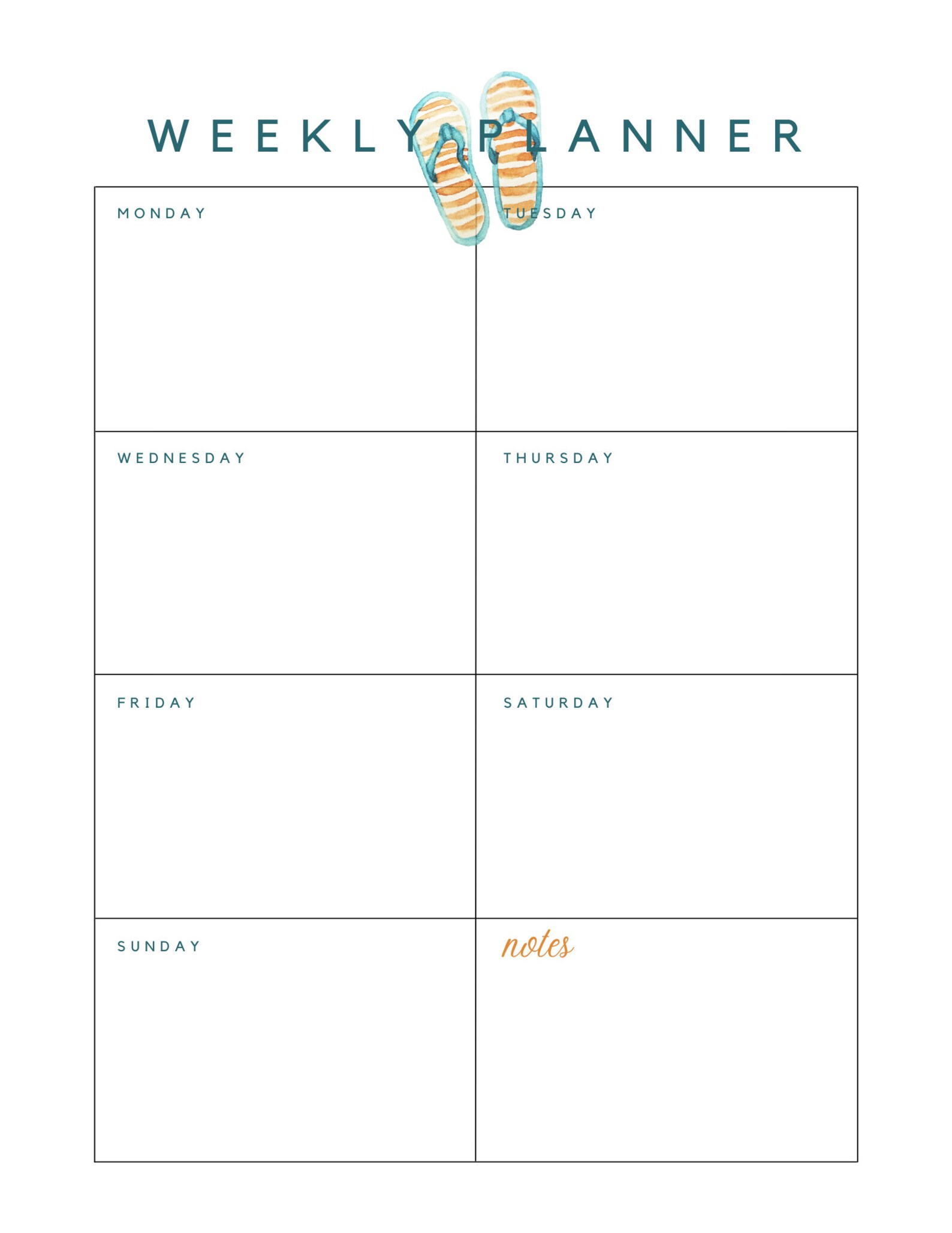 PRINTABLE June Weekly Calendar Simple Weekly Desktop Notes