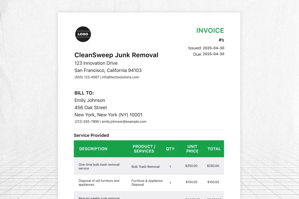 Junk Removal Invoice Template