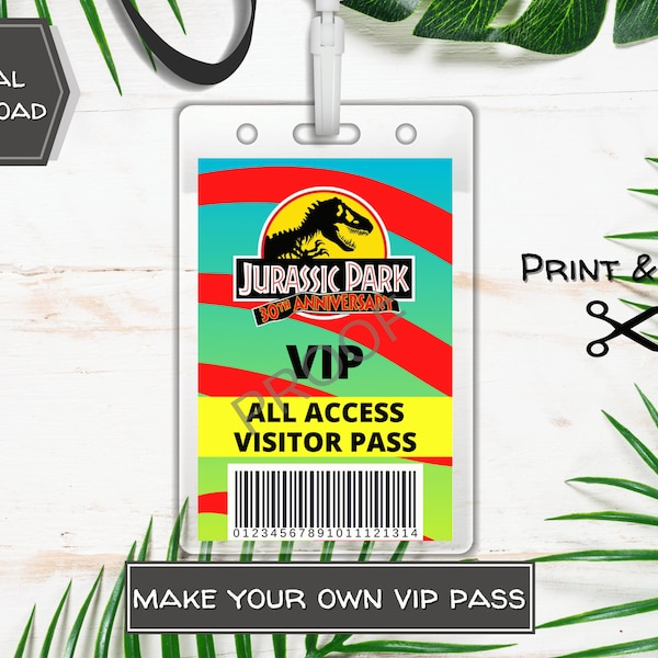 PRINTABLE Jurassic Park Visitor Day Pass ID Card Park Etsy