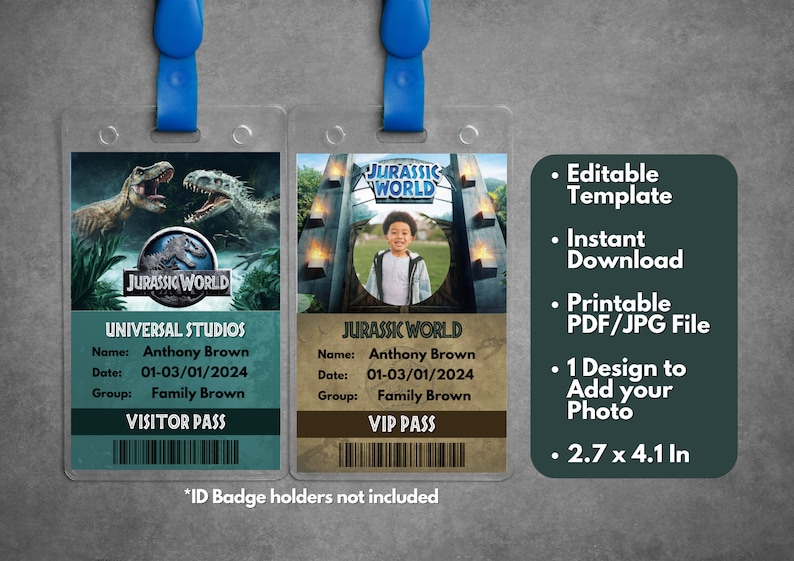 Editable Jurassic World ID Badges Template Printable Jurassic World