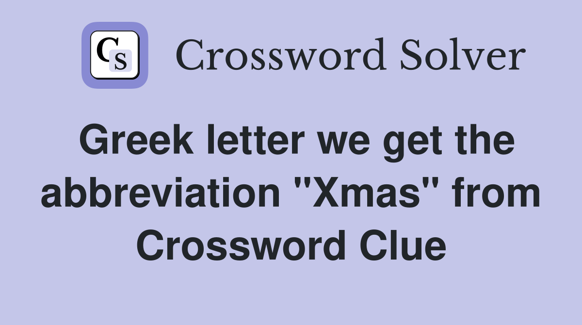 Greek letter we get the abbreviation quot Xmas quot from Crossword Clue