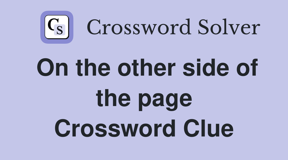 On the other side of the page Crossword Clue Answers Crossword Solver