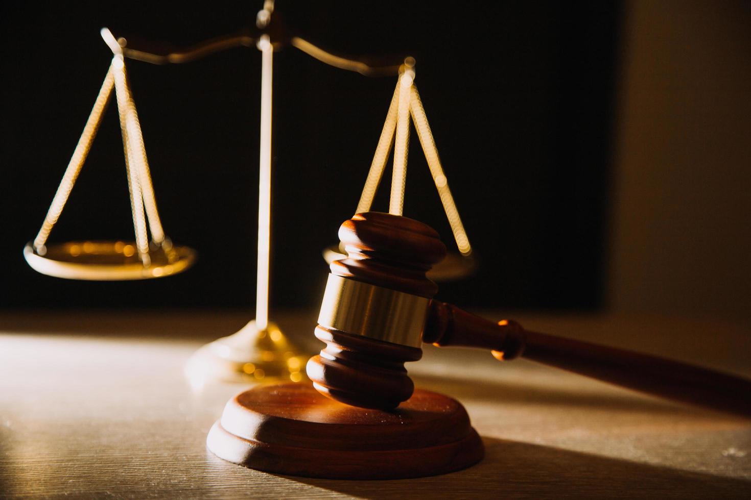 Judge gavel and Scales of Justice in the Court Hall Law concept of