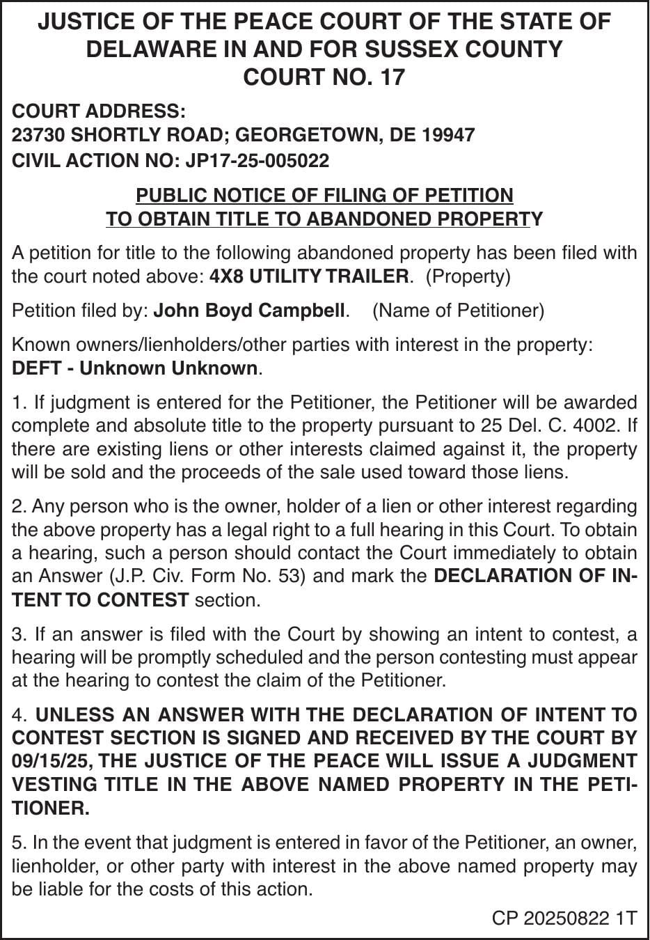 Constable Sales Justice of the Peace Court Delaware Courts State