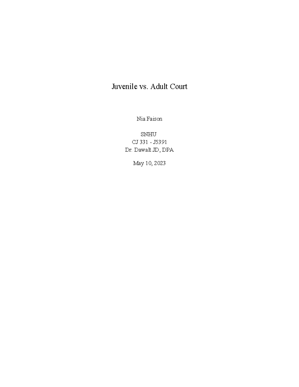Juvenile Court vsCriminal Court: Adam #39 s Troubled Past Course Hero