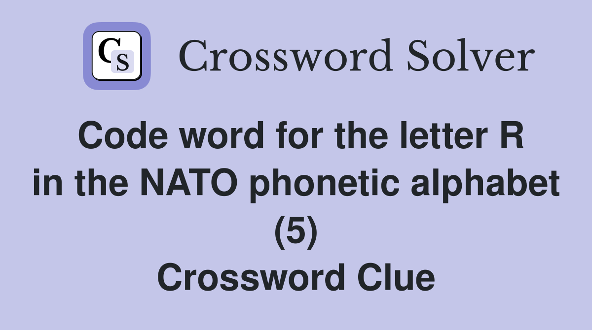 Code word for the letter R in the NATO phonetic alphabet (5