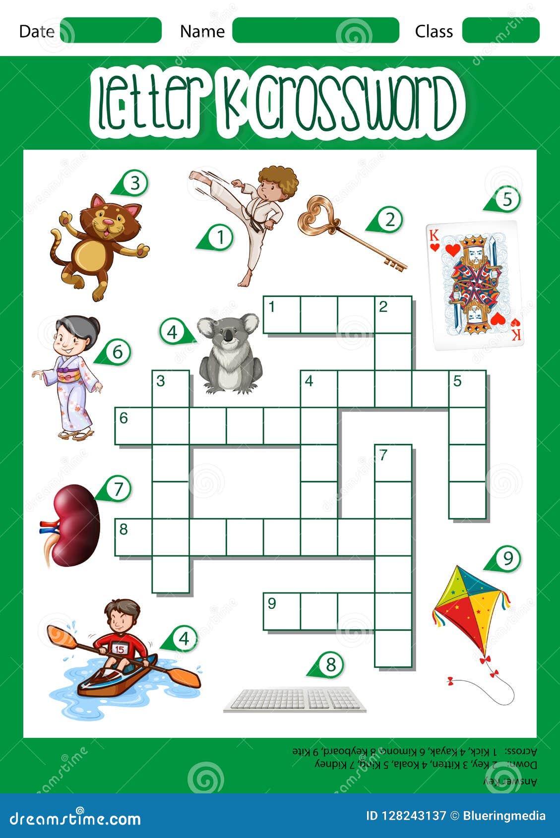 Alphabet Crossword Puzzle with the Letter K