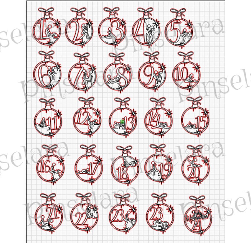 Laser Cut File Advent Calendar Pendants Gifts Pendants Christmas