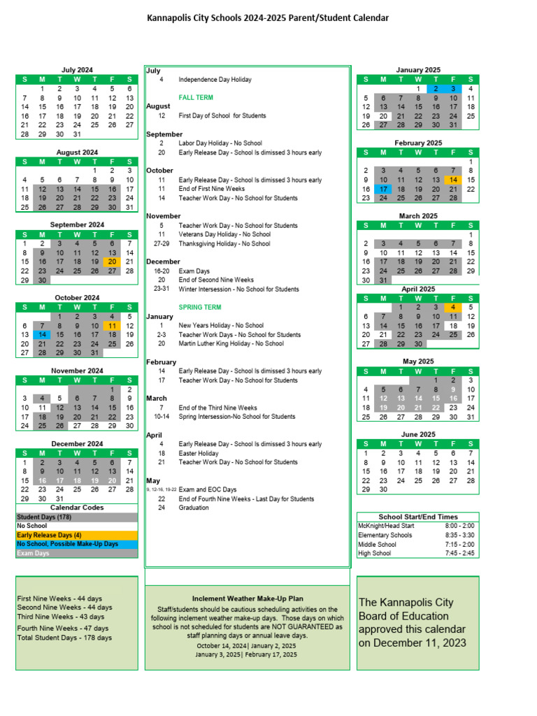 Kannapolis City Schools 2024 2025 Calendar PDF Observances Holidays