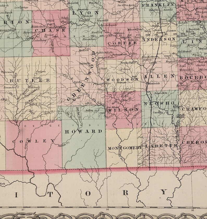 Historic County Map Montgomery County Kansas Everts 1887 23 x 29