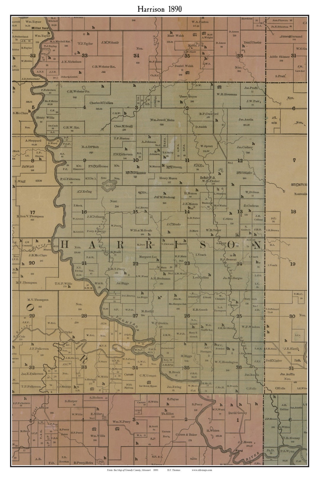 Harrison 1890 Old Town Map With Homeowner Names Missouri Grundy County