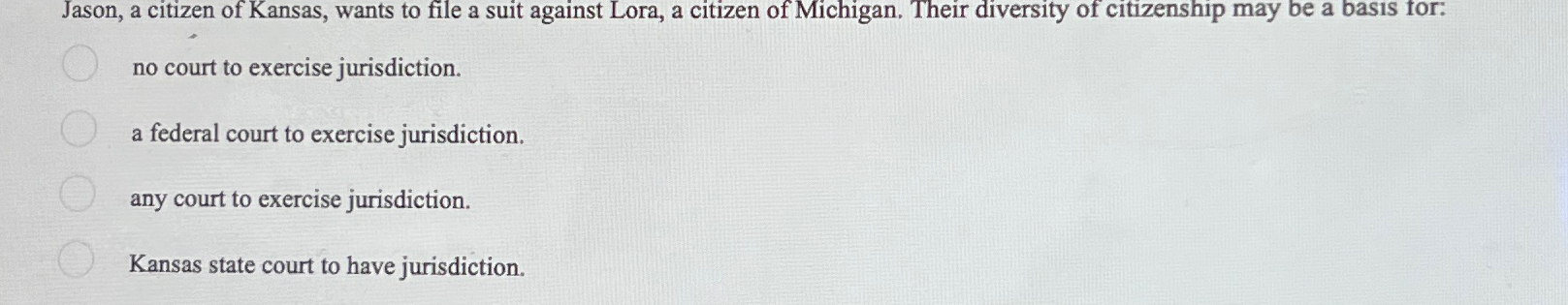 Solved Jason a citizen of Kansas wants to file a suit Chegg com
